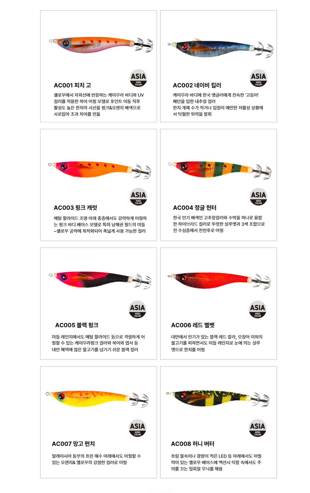 한국의 한치 낚시 환경에 맞춰 개발된 특별 컬러 등장!